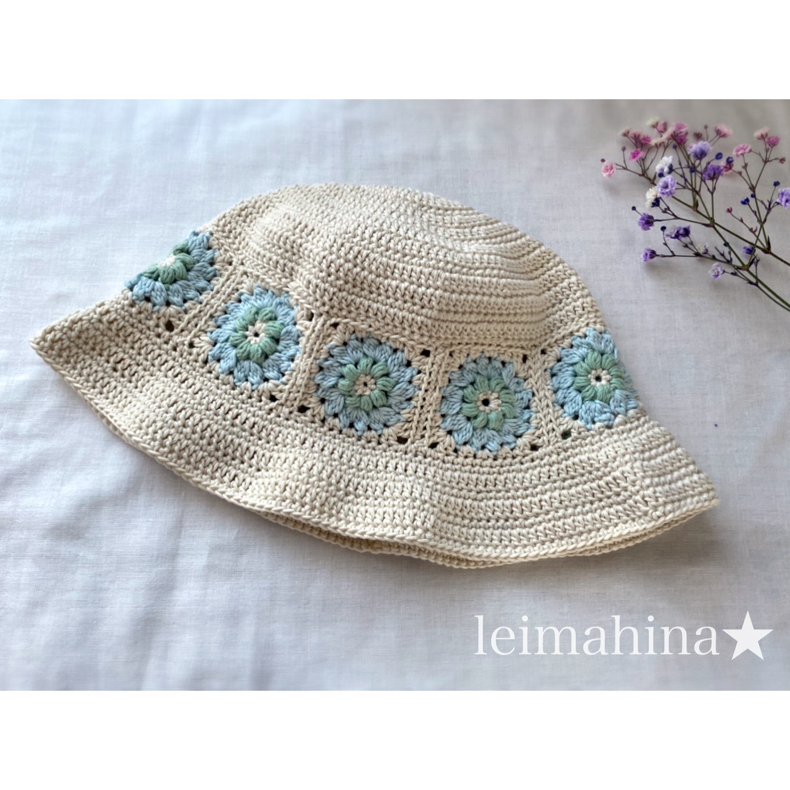 モチーフ編みがとってもかわいいバケットハットです☺︎